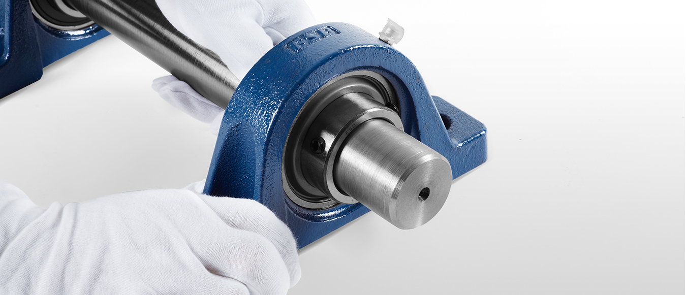 將帶座軸承插入軸上,置于所定位置。